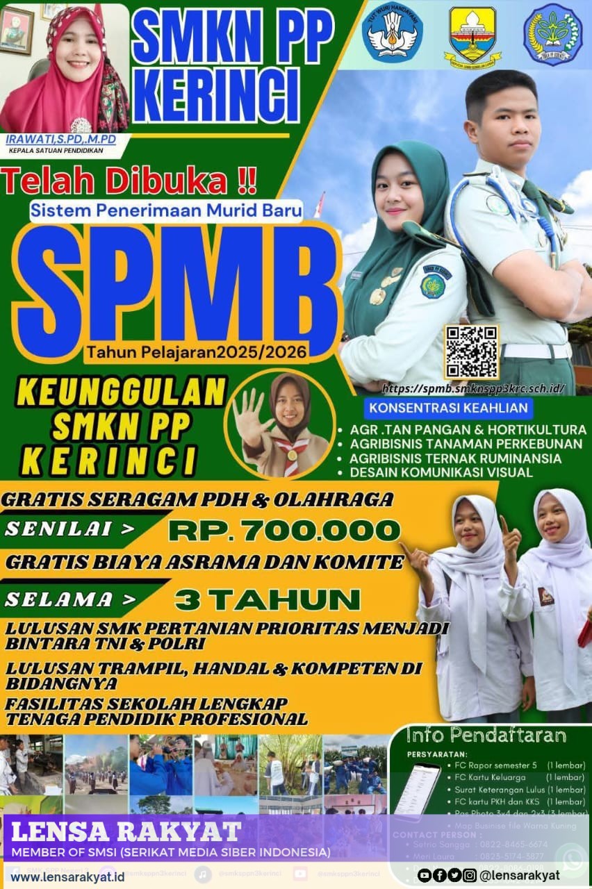 Kerinci | Lensarakyat.id – Sekolah Menengah Kejuruan Negeri (SMKN) PP Kerinci, kembali membuka pendaftaran Sistem Penerimaan Murid Baru (SPMB) tahun ajaran 2025/2026.