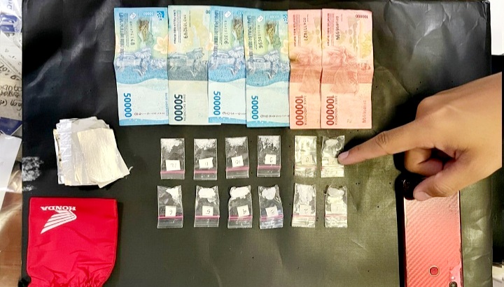 “Dari hasil penggeledahan, petugas mengamankan 12 paket sabu dengan total berat sekitar 7,865 gram, serta barang pendukung lainnya seperti plastik klip, uang tunai, dan alat komunikasi,” jelas AKP Bambang.